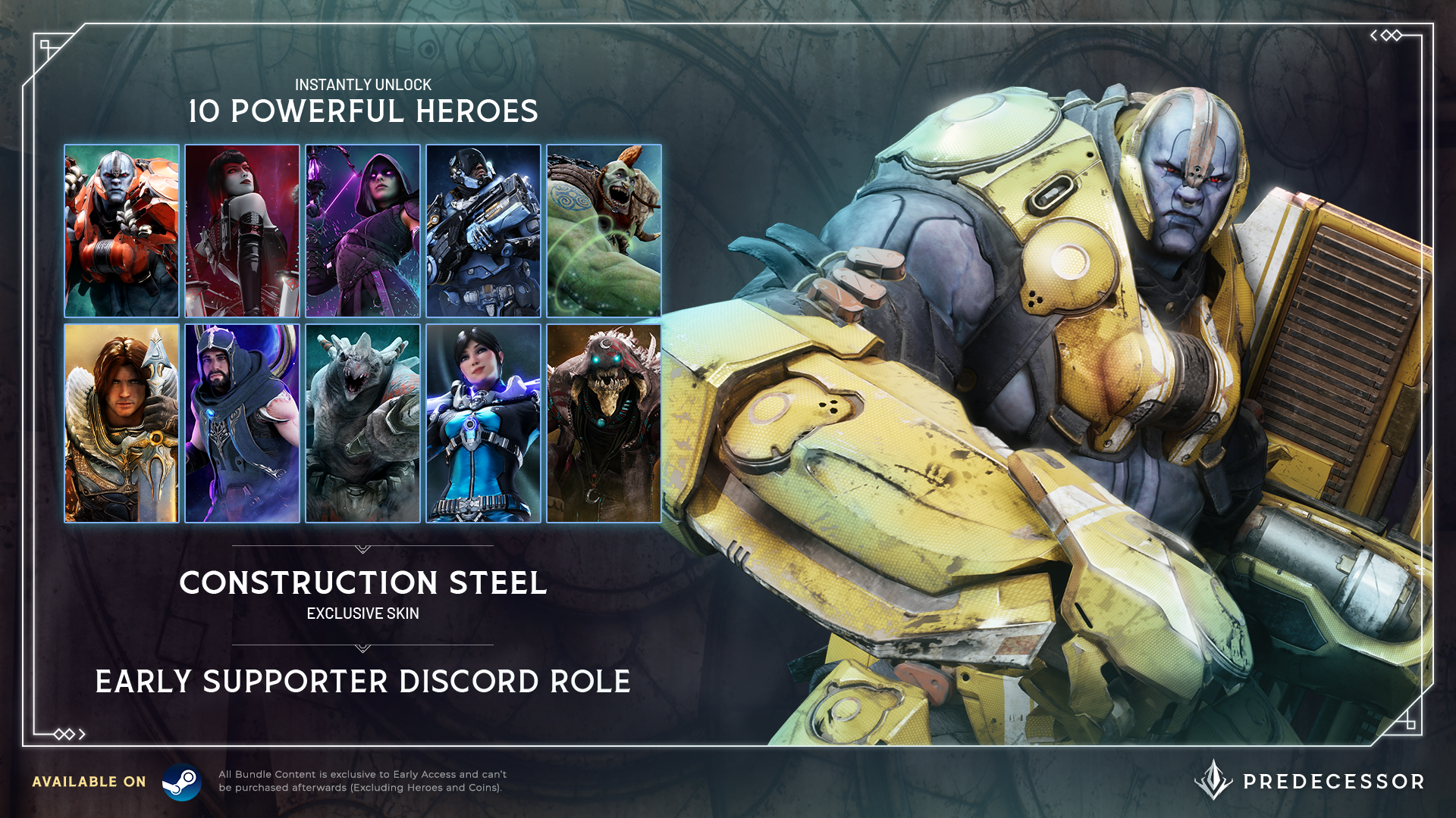 This new basic version of the game comes with 10 Heroes fully unlocked and ready to go, and is a great jumping off point for anyone who’s been on the fence about joining us for Early Access. Plus it comes with an exclusive new skin!
